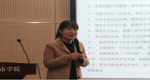 接着,薛老师作了题为“‘双碳’行动中的中国选择”主题宣讲,报告主要围绕党的二十大报告中关于碳达峰、碳中和的政策,讲解中国实施碳达峰、碳中和战略的意义,实现碳达峰、碳中和目标中所采取的措施,并取得了哪些方面的成绩?未来将采取哪些措施继续推进碳达峰、碳中和战略目标的实现。
