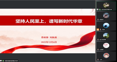 本次报告主题为《坚持人民至上谱写新时代华章》。刘秋鸽老师从三大方面解释了什么是“坚持人民至上”。第一,坚持人民至上的问题出场。第二,坚持人民至上的科学阐释。第三,坚持人民至上的实践路径。