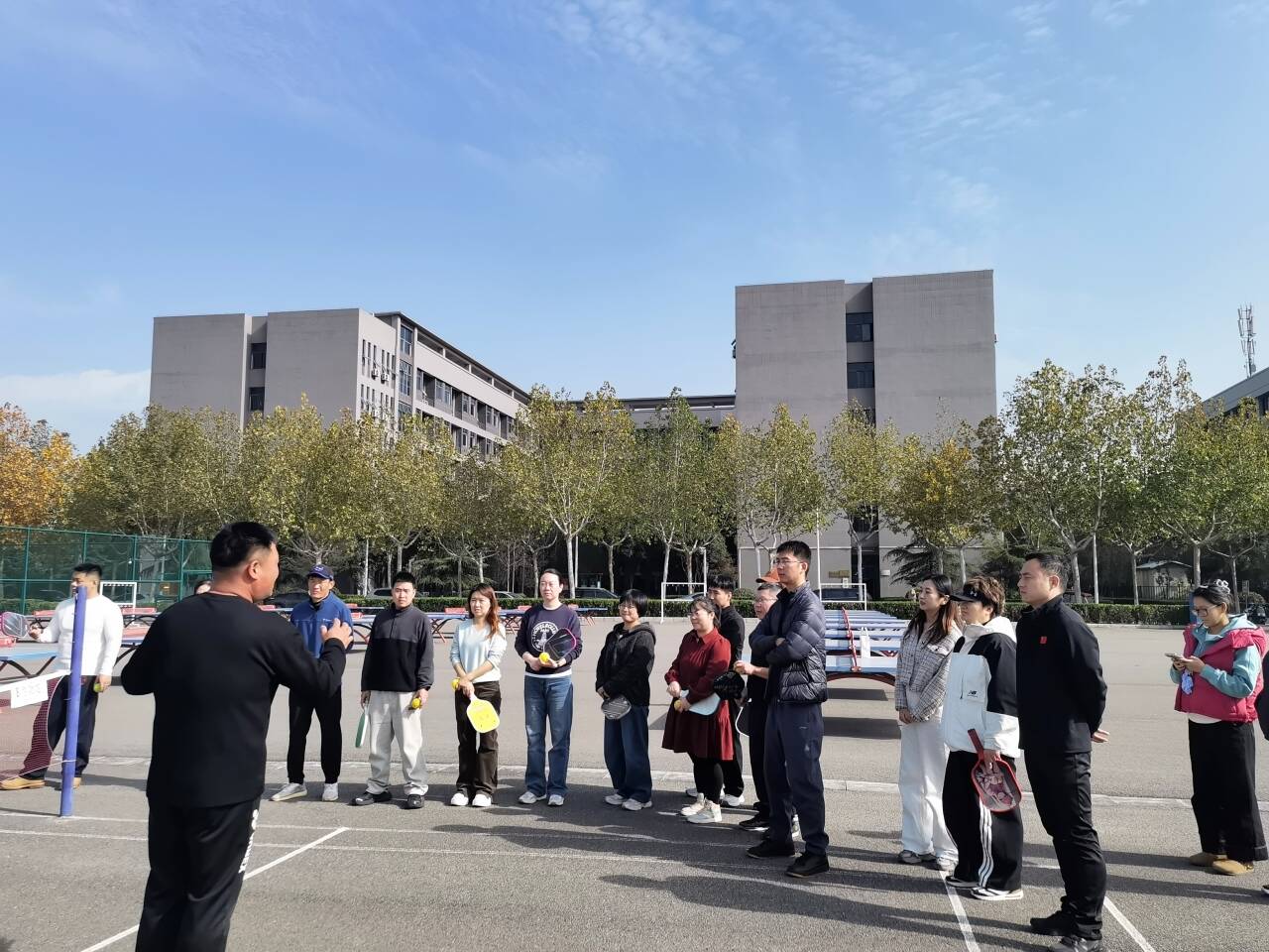 为创新基层党建工作形式,丰富党员文化生活,促进跨部门交流与合作,11月13日中午,通识教育学院教工第二党支部与机关第七党支部联合举办“运动促共建,匹克展风采”共建活动,纪委书记袁晓蕾参加活动。此次活动旨在以体育运动为桥梁,增强党支部的凝聚力与活力,同时推广新兴体育项目,营造健康向上的校园氛围。