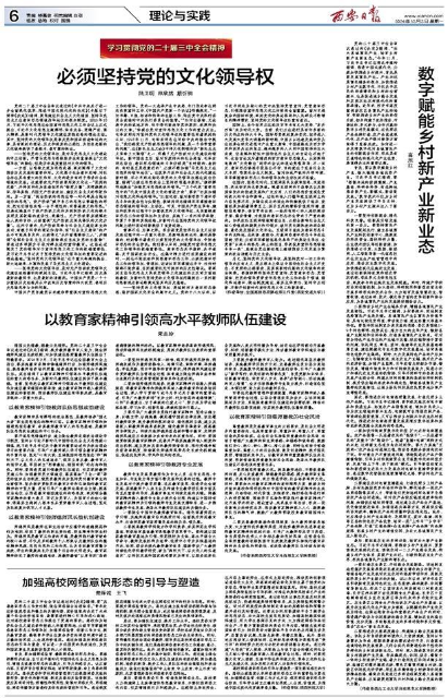 12月2日,西安交通大学城市学院思政部主任、全国高校思政课名师工作室(西安交通大学)负责人、西安交通大学政治学系主任、博士生导师陆卫明教授在《西安日报》理论版发表题为《必须坚持党的文化领导权》的理论文章。