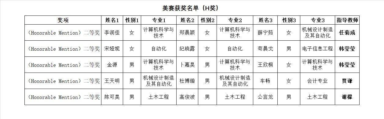 据悉,美国大学生数学建模竞赛由美国数学及其应用联合会主办,是唯一的国际性数学建模竞赛,也是世界范围内极具影响力的数学建模竞赛,赛题内容涉及经济、管理、环境、资源、生态、医学、安全等众多领域。作为激发学生学习积极性、培养创新型高素质应用型人才的有效途径,学校历来重视这项国际赛事。目前已连续组织四届,今后学校将继续以高水平学生竞赛为抓手,为培养更多高素质的应用型人才做出更大的贡献。