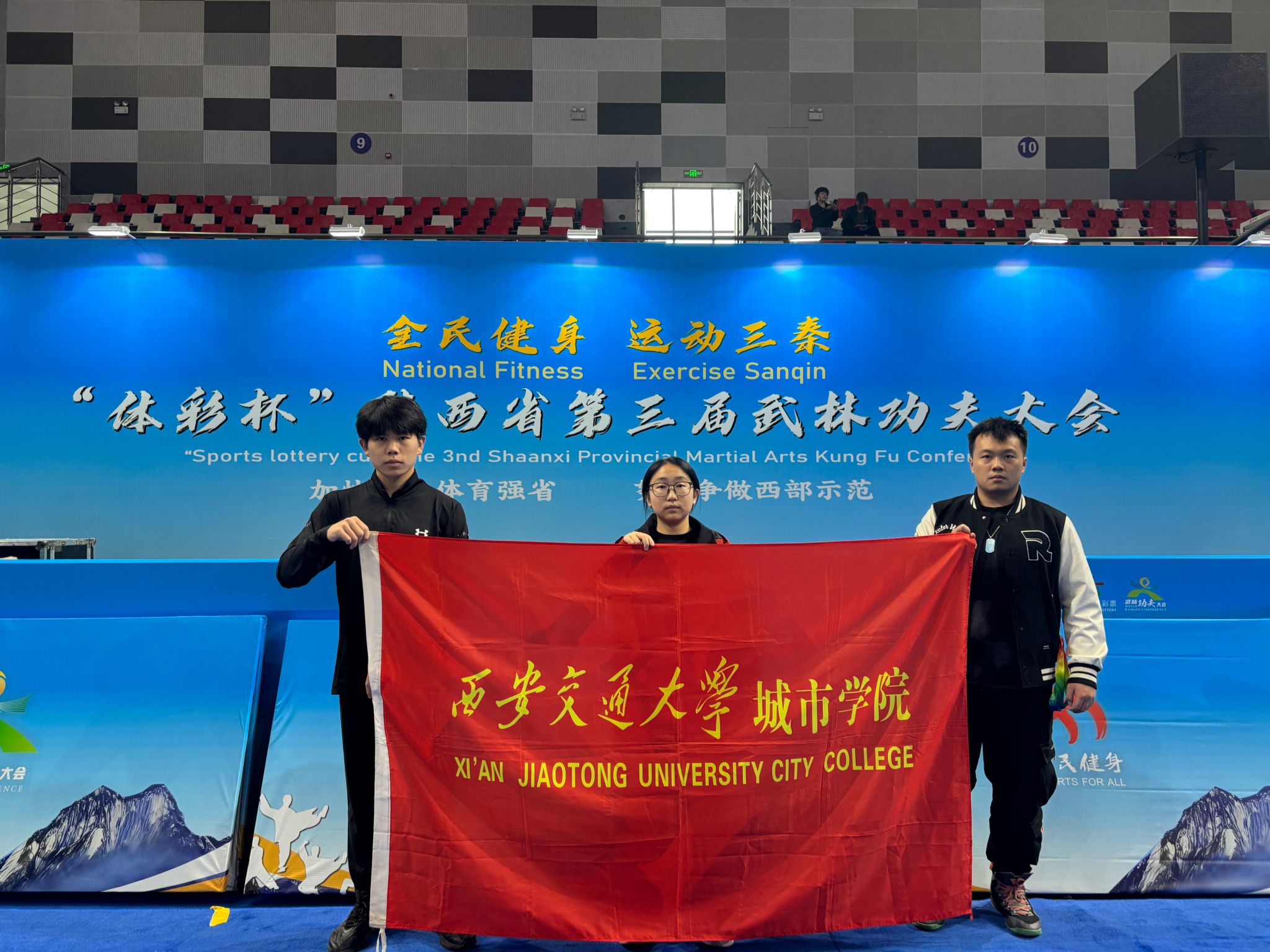 10月11日-15日,“体彩杯”陕西省第三届武林功夫大会在陕西省华阴市举行。本次赛事由陕西省体育局、渭南市人民政府、陕西省武术运动管理中心联合主办,吸引了来自世界各地154支代表队和个人参赛,参赛选手共计1764人。我校武术队凭借出色发挥,共斩获个人项目一等奖2项、二等奖2项、三等奖2项,展现了当代大学生对中华优秀传统文化的传承与弘扬。