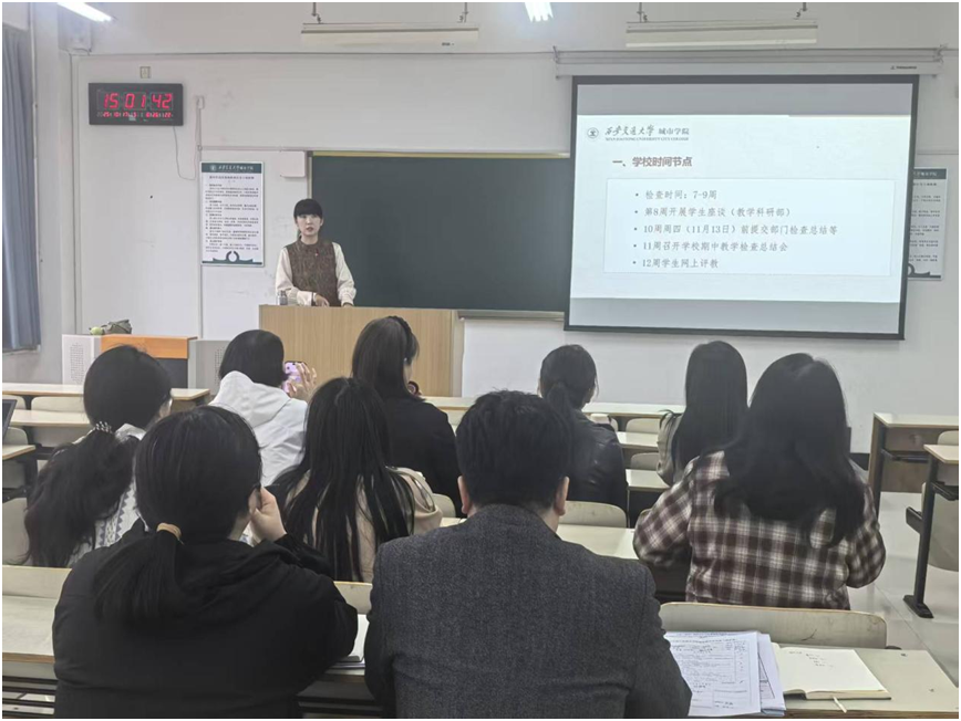 会议伊始,思政教学部负责人陈晋就期中教学检查工作作了详细安排。期中教学检查是保障教学质量的关键环节,要求教师高度重视并严格依照学校相关规定,认真完成教学进度自查、教案课件整理、听课评课及学生座谈等各项工作。重点落实专家听课反馈意见的整改,积极回应学生座谈中所提问题,切实优化教学过程,确保思政课教学规范与质量,为下半学期教学工作夯实基础。