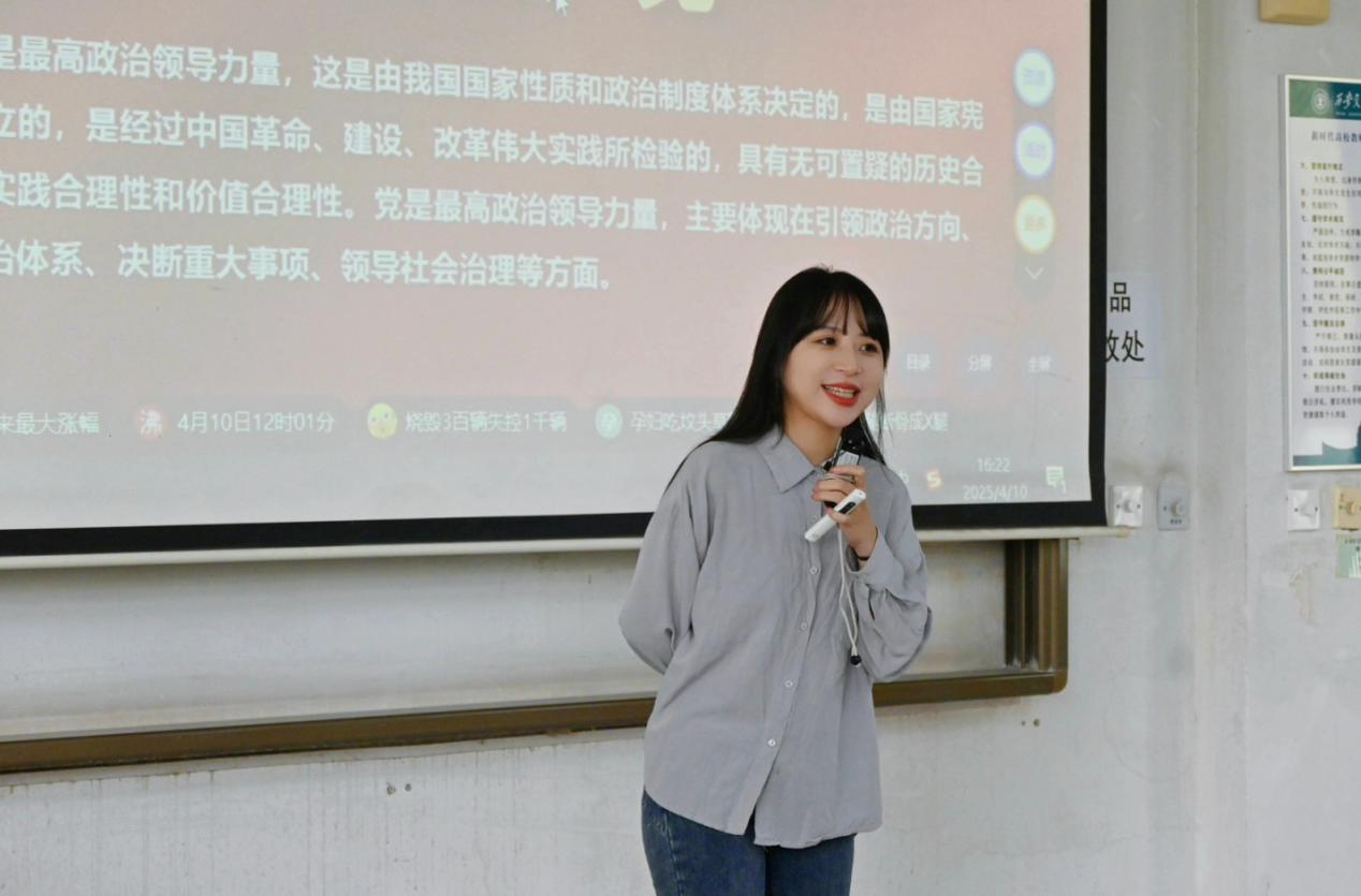 通过实际案例与大学生活的有机融合,刘逸萱同学的讲解让理论更贴近现实、让思政内容更贴近青年心声。此次“青课堂”活动突破了传统教学模式,是思想政治理论教学与青年实践教育融合的一次有益探索。学生从“听课人”转变为“主讲人”,不仅激发了主动思考与表达能力,也让原本严肃的理论课程“活”了起来、“热”了起来。