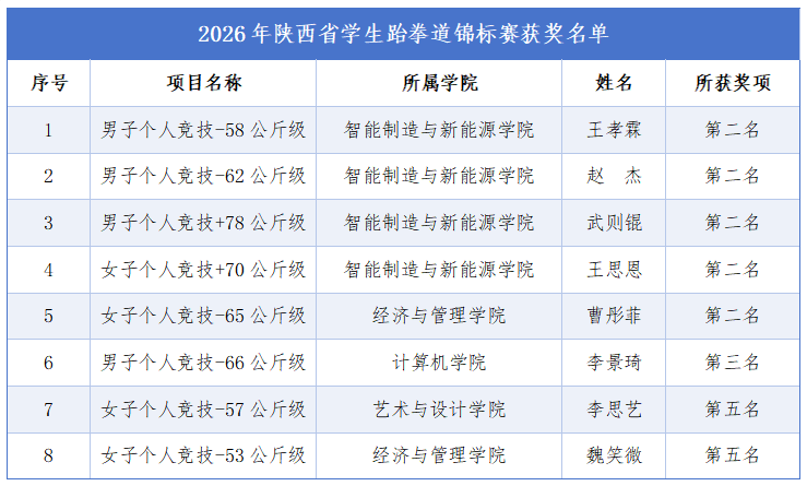 4月25日-26日,2026年陕西省学生跆拳道锦标赛在陕西青年职业学院举办。西安交通大学城市学院跆拳道代表队共获得5银1铜、2个第五名的优异成绩。