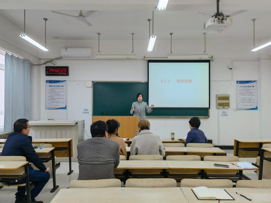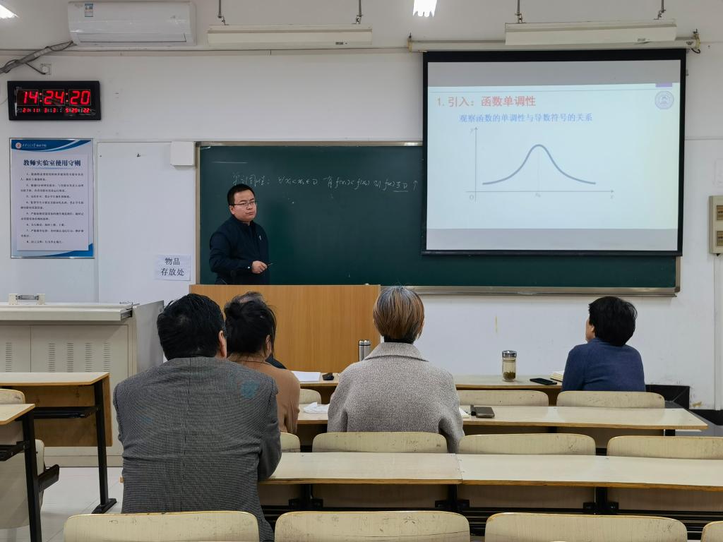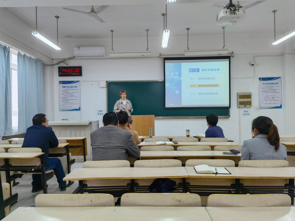 活动中,任菊成、王枫、杨东红、赵迎利四位青年教师分别以“函数的单调性和曲线的凹凸性”“矩阵的秩”“微分”“定积分的几何应用”4个主题进行了25-30分钟的教学展示。