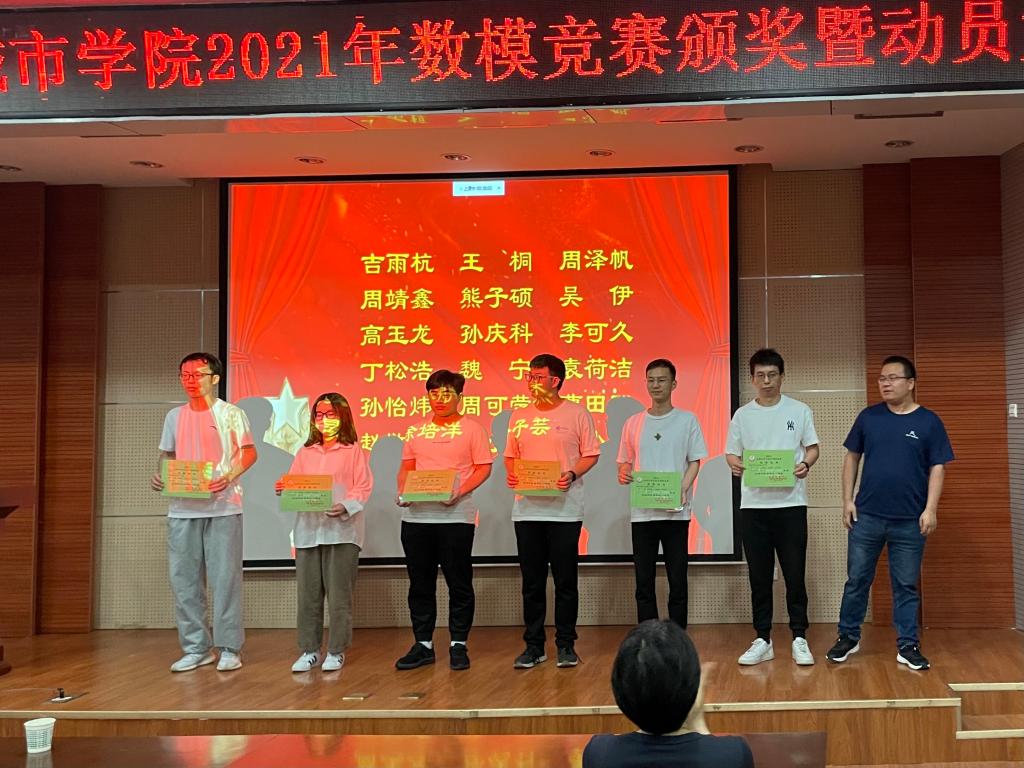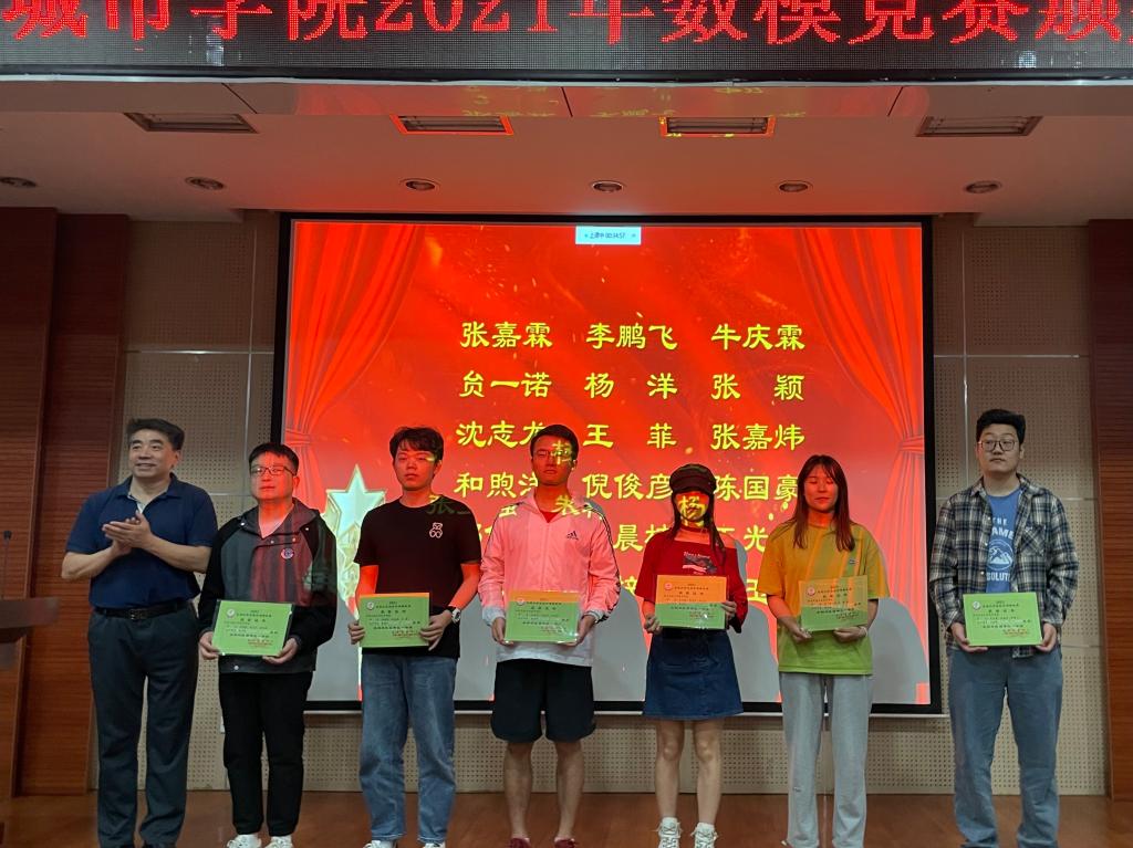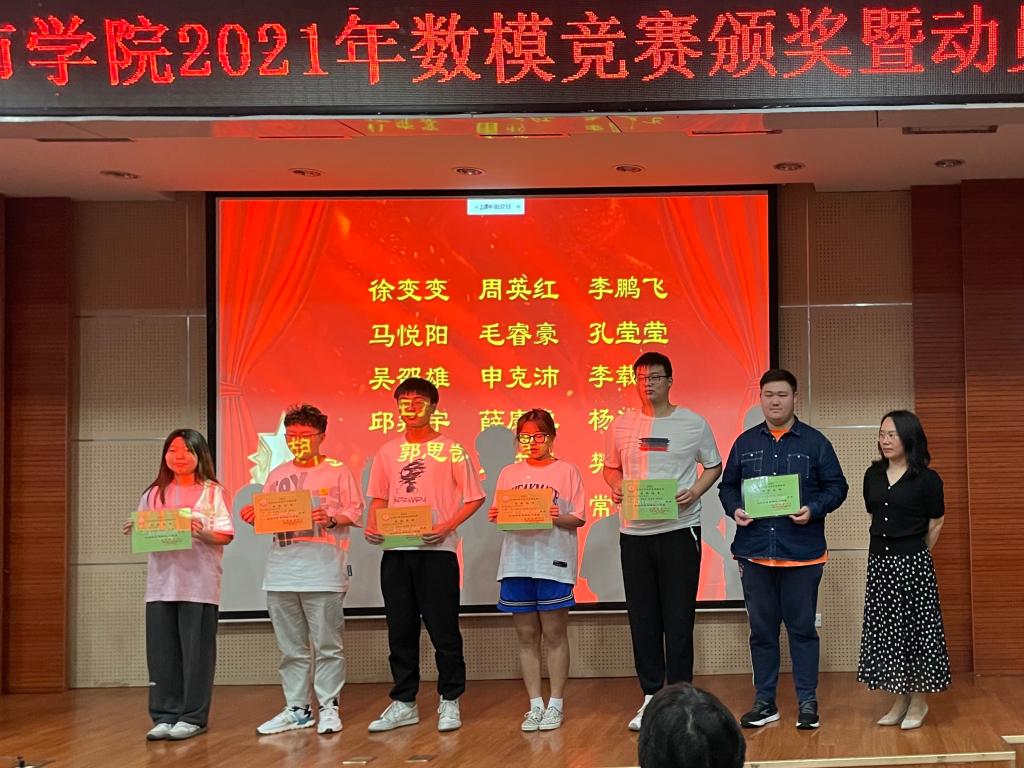主持人宣读了2021年全国数学建模竞赛获奖名单,与会领导老师分别为获奖学生颁发获奖证书,并对获奖学生表示祝贺。