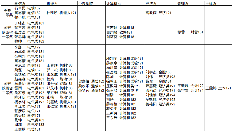 2020年学院各系参加竞赛并获奖的同学名单如下表。