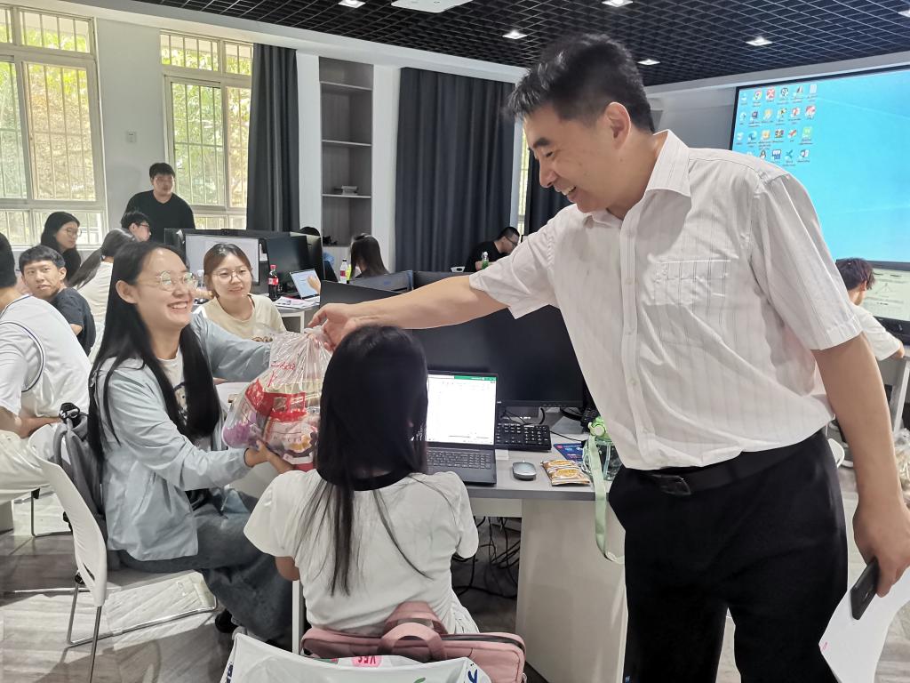 9月8日上午,学院党委书记张爱萍、副院长朱旭、学生服务中心主任辛红伟来到比赛现场看望并慰问参赛学生,鼓励学生以饱满的精神状态全身心投入比赛,发扬团队协作精神,勤于思考,坚持不懈,争取发挥最佳水平。