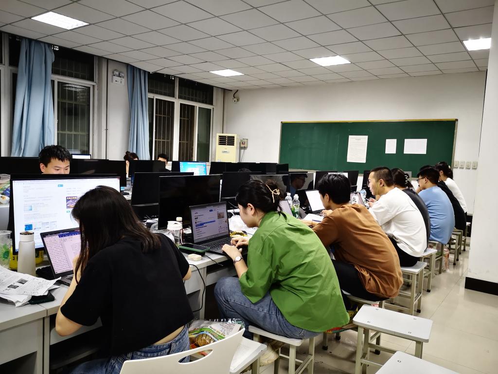 本次竞赛在学院各部门和教学服务中心的大力支持下,数学教学部高度重视,从4月开始组织报名并着手准备参赛队伍的选拔和培训工作,组建由电信系、数学教学部等14位教师参与的竞赛指导小组。通过进行专题讲座、专项指导、赛前强训、模拟竞赛、赛前冲刺等一系列培训,师生赛前线上、线下一起努力准备。比赛期间指导教师放弃周末休息时间,全程为学生提供良好的竞赛环境和条件,给同学们加油、打气。比赛现场不分昼夜、灯火通明,参赛学生紧张进行小组讨论、查阅资料、推理演算、编程求解、撰写论文,截至9月19日上午,经过四天四夜的拼搏,成功提交参赛作品,顺利完成竞赛。