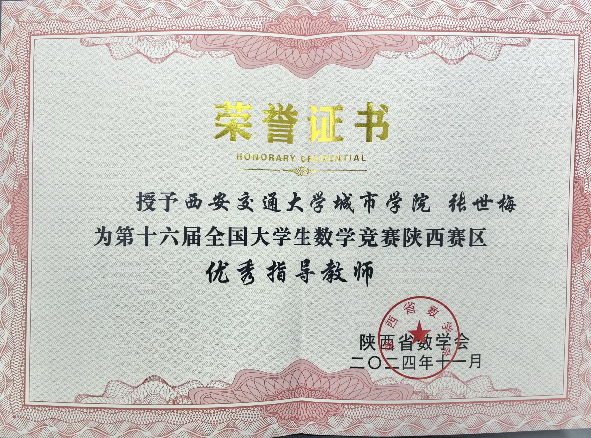 近日,第十六届全国大学生数学竞赛成绩揭晓,我校师生再创佳绩,共获奖93项,其中陕西赛区一等奖21项、二等奖33项、三等奖39项。同时数学教学部张世梅教授被评为陕西赛区“优秀指导教师”。
