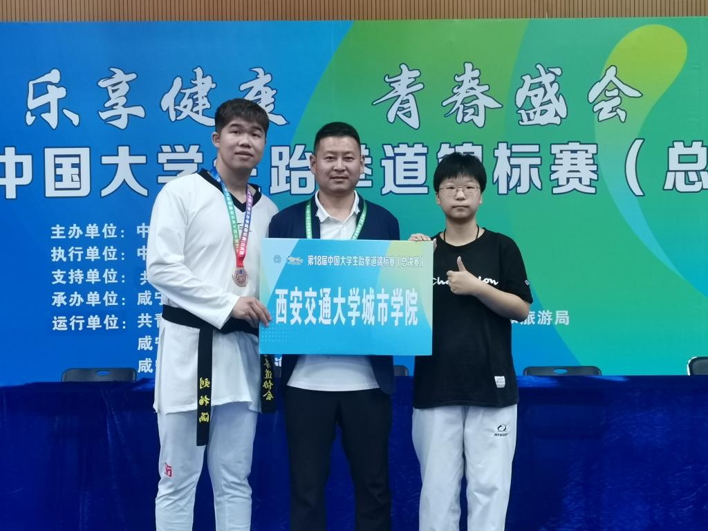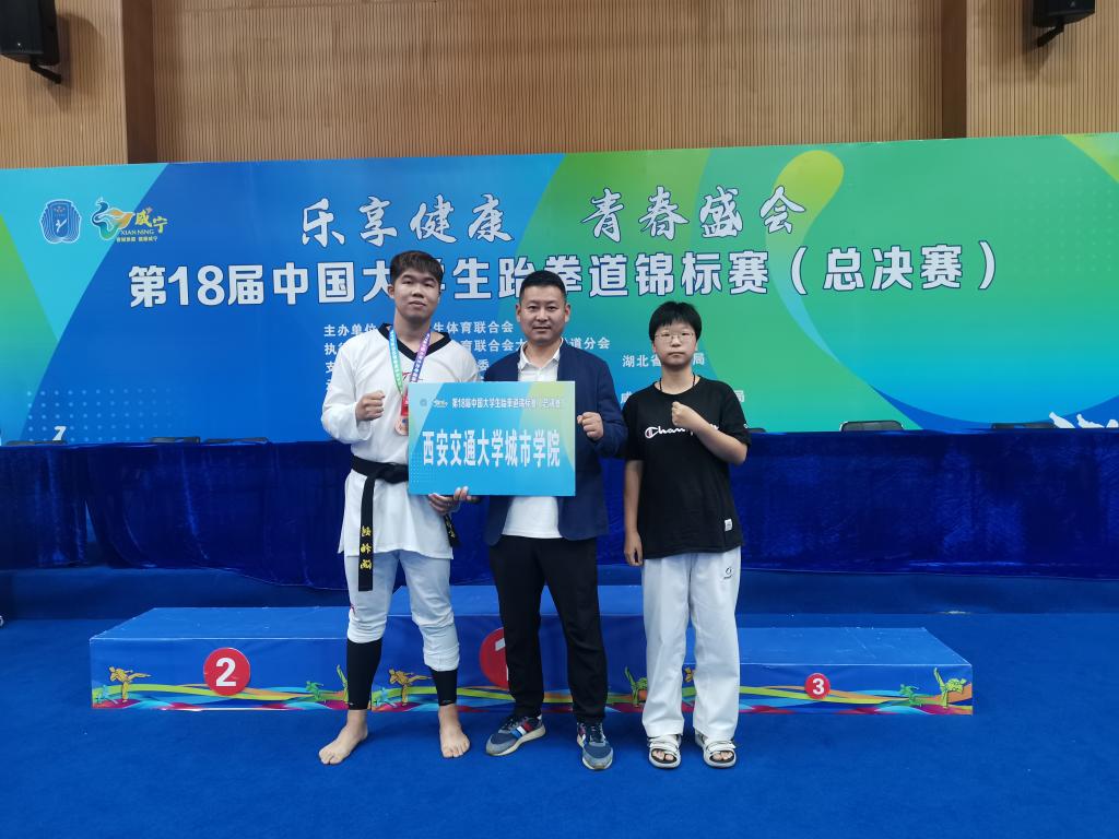 西安交通大学城市学院跆拳道队在教练员郑永权的带领下派出两名选手参赛。在激烈的比赛中,两位选手展现出了令人钦佩的勇气和决心。他们不仅敢于挑战强大的对手,而且在比赛中全力以赴,毫不畏惧。这种表现充分体现了西安交通大学城市学院学子们顽强拼搏、积极向上的精神风貌。他们的勇敢和决心为观众树立了一个积极向上的榜样,也展示了西安交通大学城市学院培养出的学生的出色品质。最终外国语学院英语2001刘柏涵同学获全国+87级别季军,艺术与设计学院视觉2301李思艺同学获全国-67级别第五名的优异成绩。
