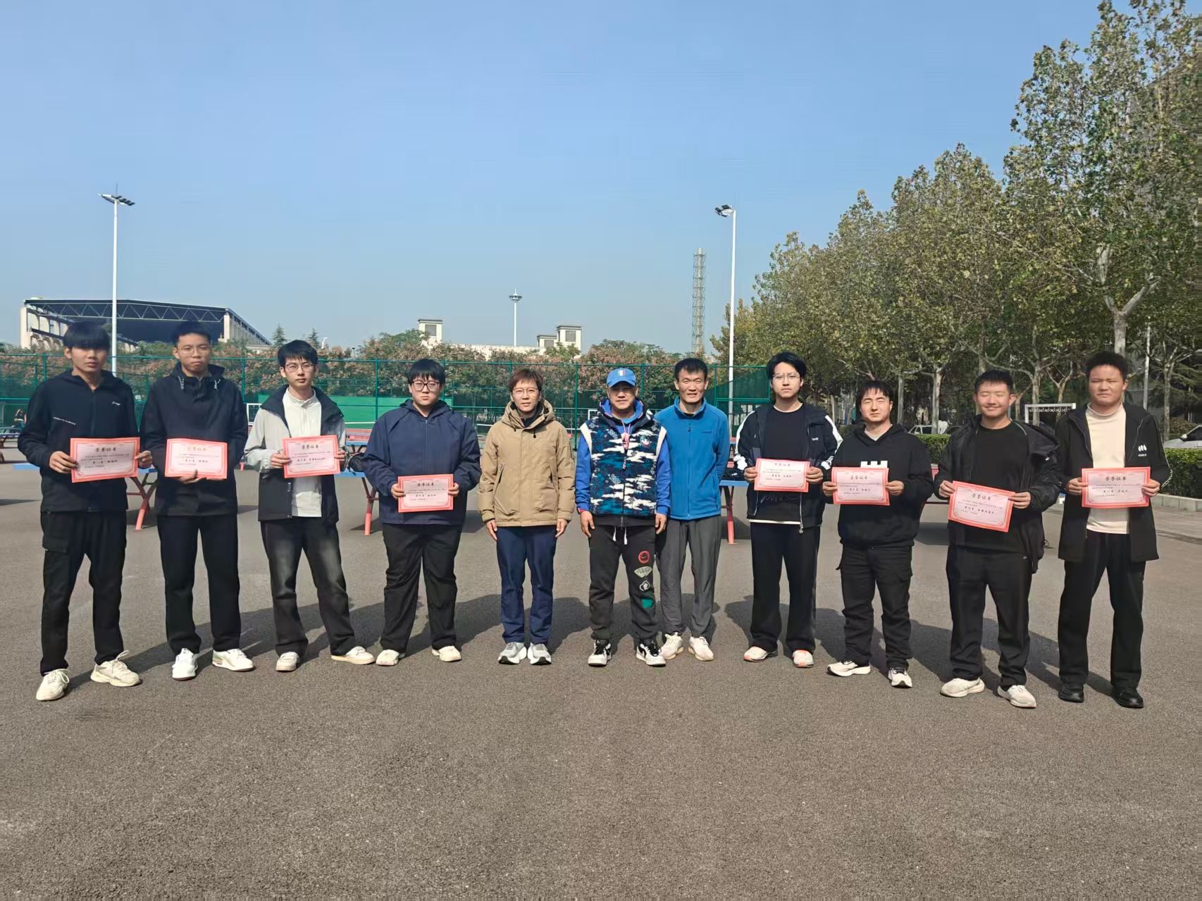 历经数周的激烈角逐,2025-2026学年第一学期校内乒乓球社团对抗赛于近日圆满收官。颁奖仪式于11月3日中午在北体育场举行,通识教育学院体育教学部雷笛、何福州、张雪琴分别为获奖团队颁发奖项。